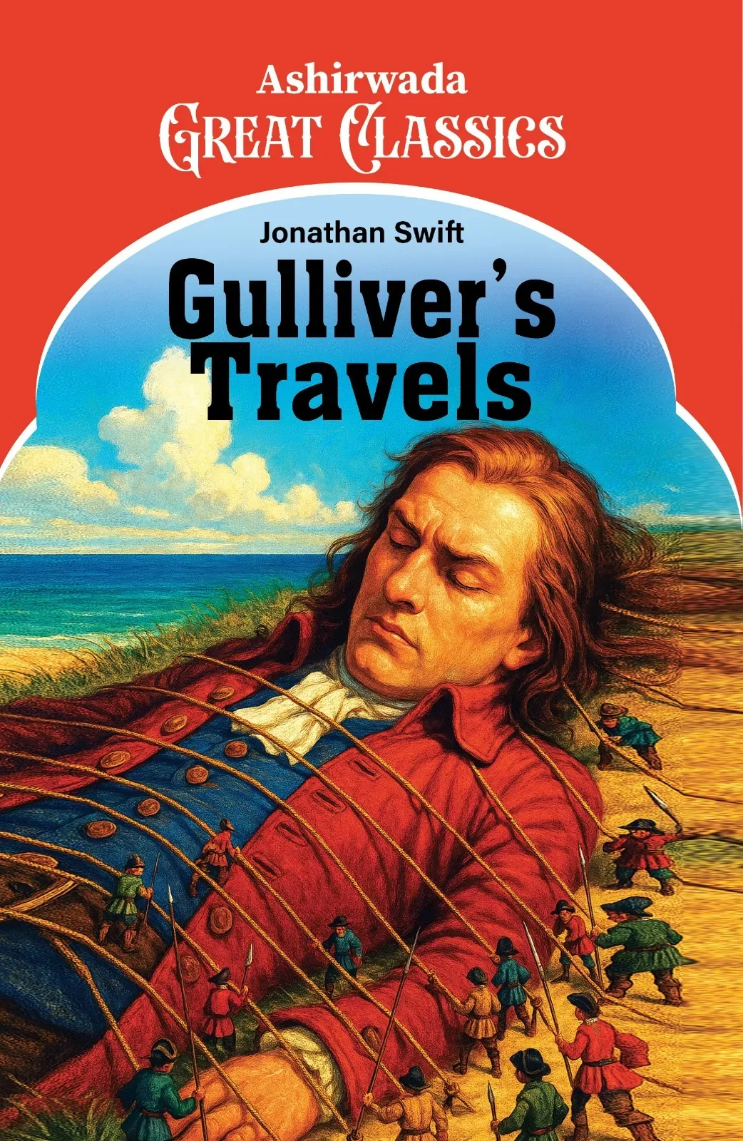 In a little time I felt something alive moving on my left leg. Advancing gently forward over my breast, it came almost up to my chin. Bending my eyes down ward as much as I could, I perceived it to be a human creature about six inches high, with a bow and arrow in his hands and a quiver on his back. In the mean time I felt at least forty more of the same kind fol lowing the first. I was in the utmost astonishment and roared so loud they all ran back in fright and some of them, I was told later, were hurt by leaping from my sides. However, they soon returned and one of them, who ventured so far as to get a full sight of my face, lifting up his hands and eyes by way of admiration, cried out in a shrill, clear voice, “Hekinah Degul!” The others repeated the same words several times, but I did not know then what they meant. I lay all this while in great uneasiness. Struggling to get loose, I broke the strings and wrenched out the pegs that fastened my left arm. At the same time, with a violent pull that gave me sharp pain, I loosened the strings that tied down my hair on the left side. Gulliver’s Travels – 11